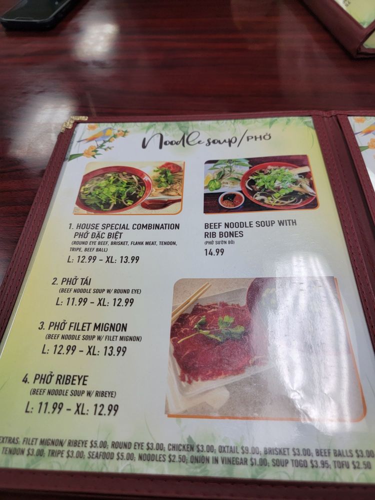 Thinly sliced filet mignon in pho broth. Available in large or x-large.