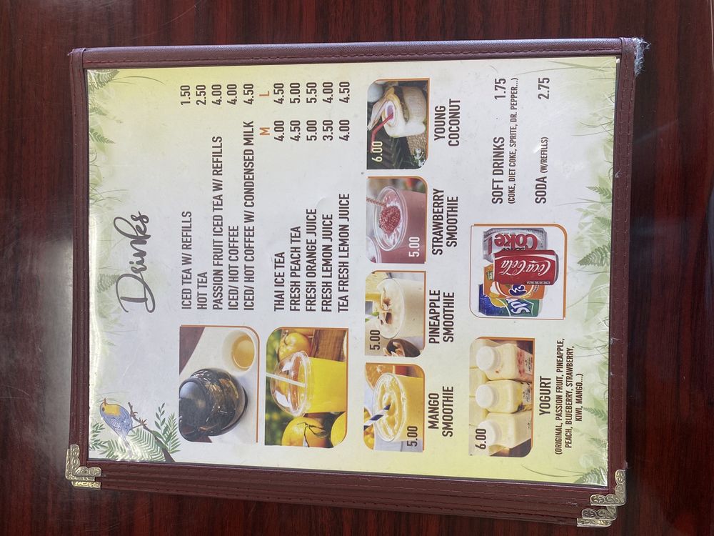 Medium-sized Thai iced tea with a blend of strong brewed tea, sweetened with sugar, and mixed with half-and-half.